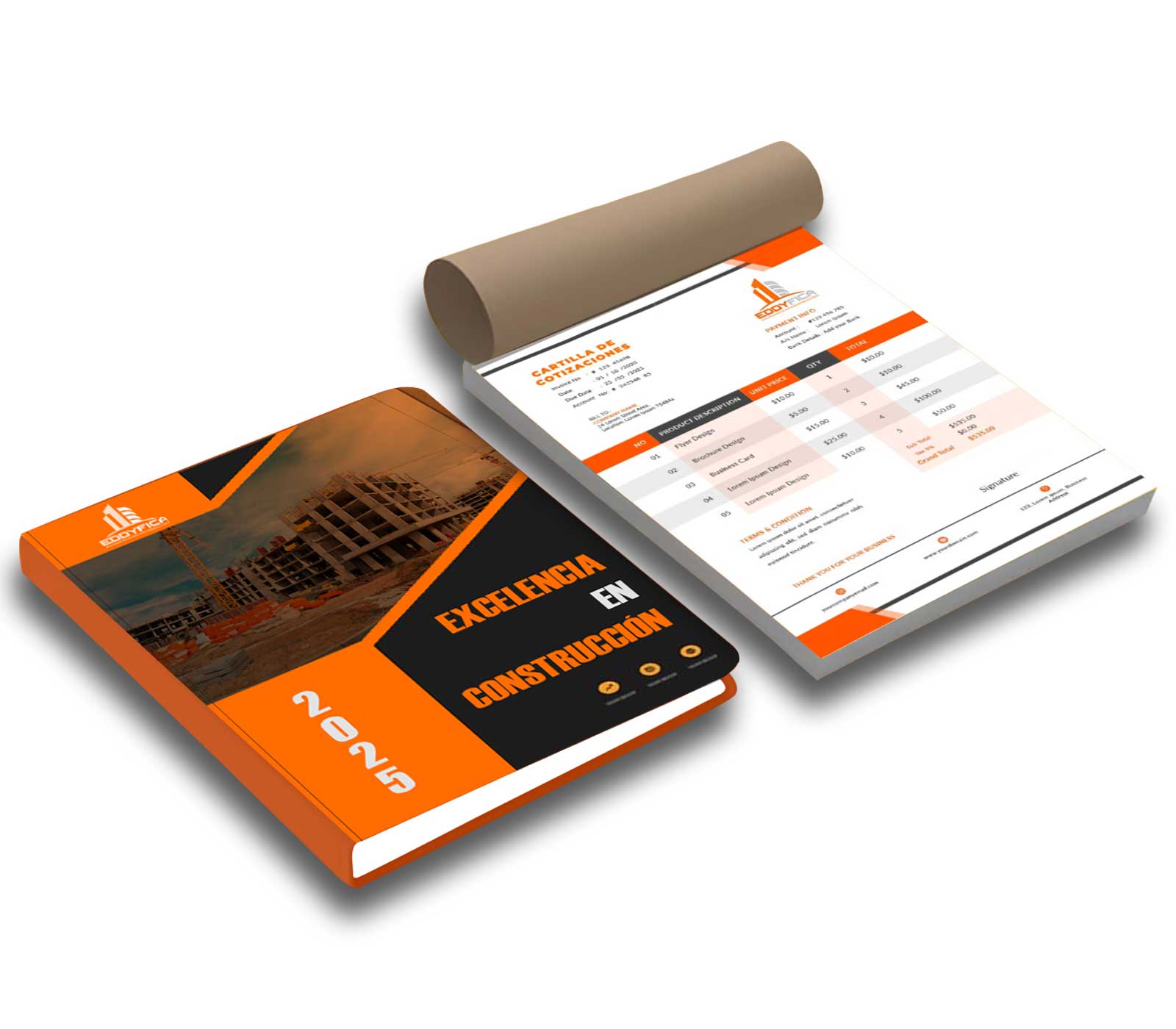 Además de diseñar todos los recursos gráficos de la empresa, también nos encargamos de elaborar la cartilla de cotización de servicios para e momento de la construcción.